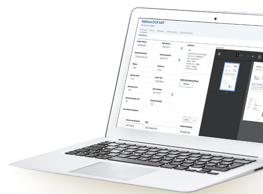 Przetworzone dokumenty trafiają bezpośrednio do odpowiednich systemów np. SAP, CRM czy ERP.