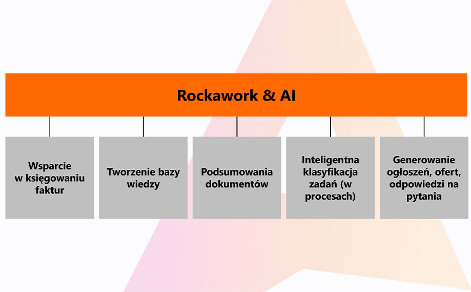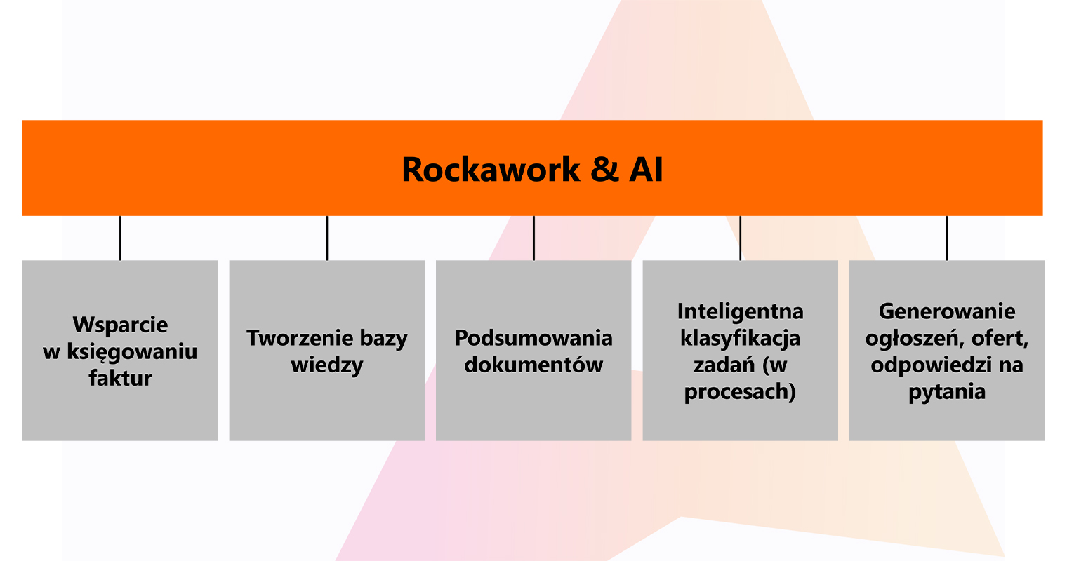 Znane od dawna zastosowania platformy Rockawork mogą być obecnie wzbogacone o nowe funkcje znacznie ułatwiające użytkownikom pracę z narzędziem i pozwalające na łatwą digitalizację procesów, które wcześniej były niemożliwe do automatyzacji. Jest to możliwe dzięki wbudowaniu narzędzi sztucznej inteligencji opartych na dużych modelach językowych.